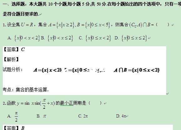 四川省成都石室中学2014届高三上学期期中考试(数学文)(解析版)