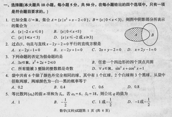 湖北省襄阳市普通高中2014年高考第二次调研统一测试(数学文)扫描版