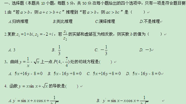 【新课标版】2013-2014学年高二下学期期中考试(数学理)