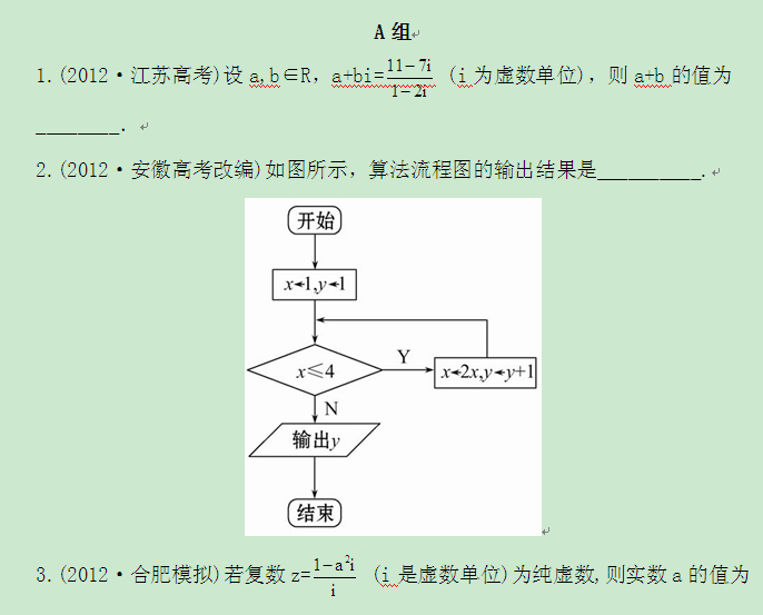【金榜二轮复习】1.2向量运算与复数运算、算法、合情推理(2013版之2014年高考文科数学专题辅导与训练专题检测卷-江苏专供)