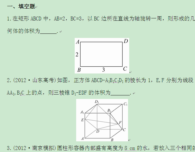 【金榜二轮复习】5.1空间几何体及其表面积和体积(2013版之2014年高考文科数学专题辅导与训练专题检测卷-江苏专供)