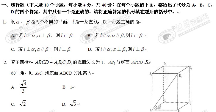 安徽省芜湖市09-10学年高二上学期第一学段模块测评(数学A)
