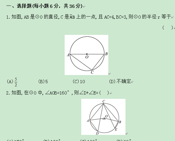 2012版高中同步数学课时训练:2.1圆周角定理(人教A版选修4-1)