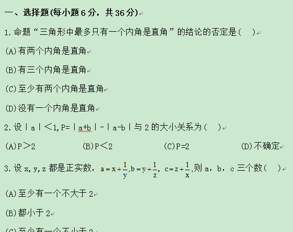 2012版高中同步数学课时训练:2.3反证法与放缩法(人教A版选修4-5)