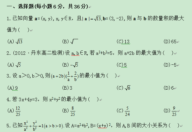 2012版高中同步数学课时训练:3.1二维形式的柯西不等式(人教A版选修4-5)