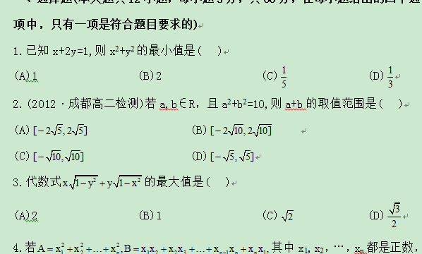 2012版高中同步数学课时训练:阶段质量检测(三) 单元质量评估(三)(人教A版选修4-5)