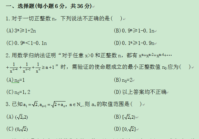 2012版高中同步数学课时训练:4.2用数学归纳法证明不等式举例(人教A版选修4-5)