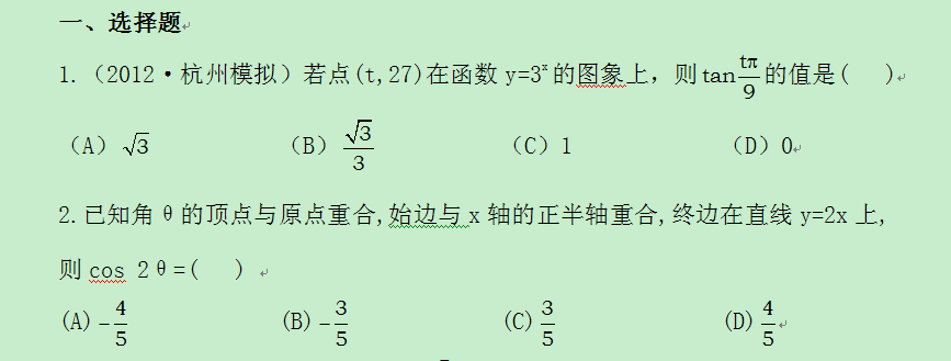 2013版高考数学专题辅导与训练检测卷:3.1任意角的三角函数及三角恒等变换(浙江专供-数学理)