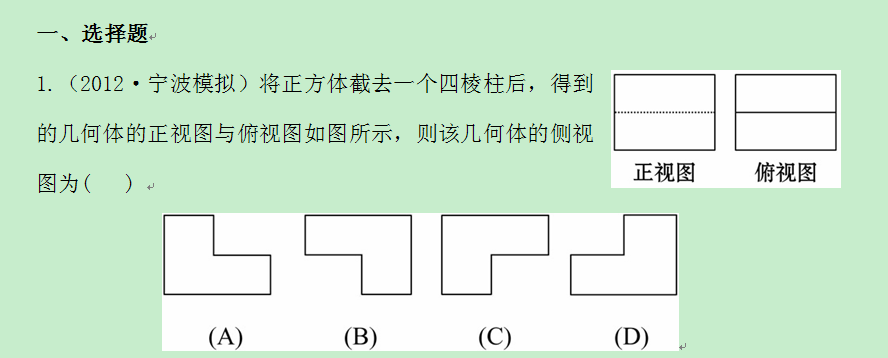 2013版高考数学专题辅导与训练检测卷:5.1空间几何体的三视图、表面积及体积(浙江专供-数学理)