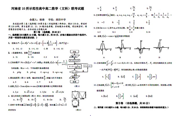 河南省2013-2014学年高二下学期十所示范性高中联考(数学文)扫描版