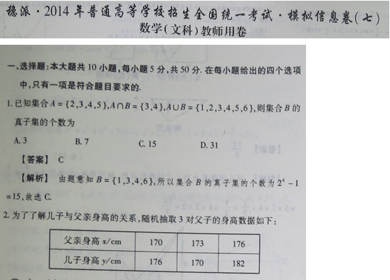 湖北省稳派教育2014年普通高等学校招生全国统一考试·押题卷(七) (数学文) 扫描版