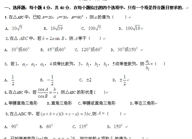 天津市第一百中学2013-2014学年高一下学期第一次月考(数学)