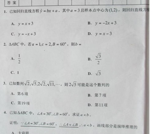 天津市蓟县2013-2014学年高二下学期期期中考试(数学文)扫描版