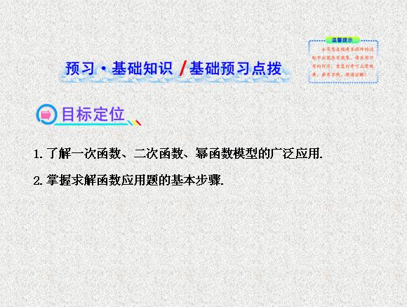 2013版高中同步数学配套课件:3.4.2.1一次函数、二次函数、幂函数模型的应用举例(苏教版必修1)
