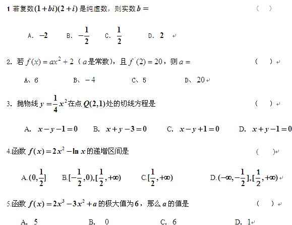 甘肃省兰州五十五中2013-2014学年高二下学期期中考试(数学理)