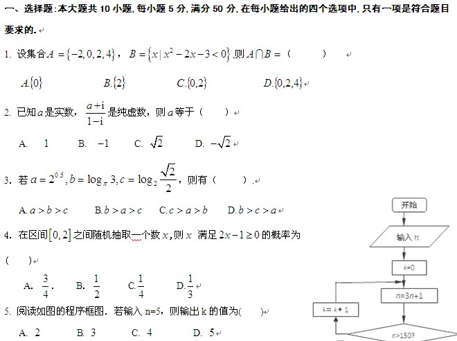 广东省梅州市某重点中学2013-2014学年高二下学期期中考试(数学文)