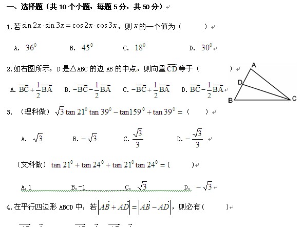 四川省成都市金堂中学2013-2014学年高一下学期期中考试(数学)缺答案