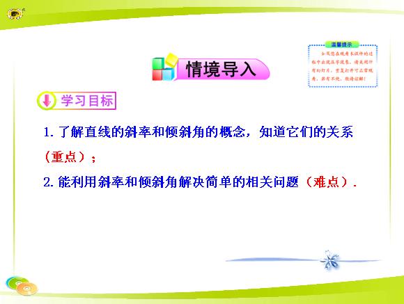 2013版高中数学全程学习夺冠方略多媒体教学课件:2.1.1 直线的斜率(苏教版必修2)