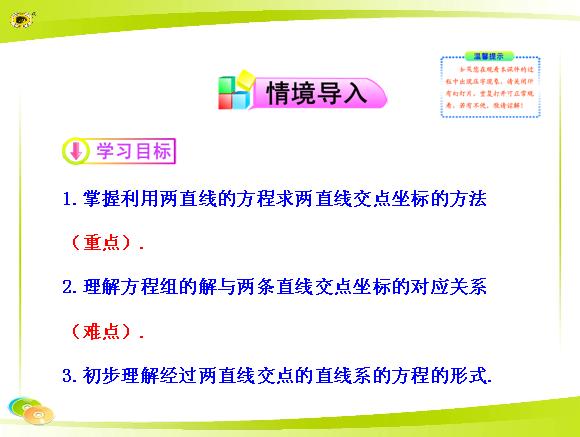 2013版高中数学全程学习夺冠方略多媒体教学课件:2.1.4 两条直线的交点(苏教版必修2)