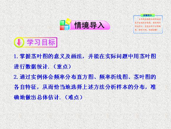 2013版高中数学全程学习夺冠方略多媒体课件:2.2.3 茎叶图(苏教版必修3)