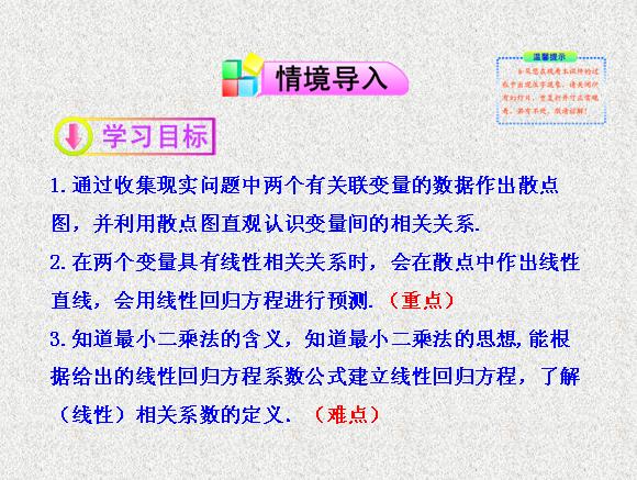 2013版高中数学全程学习夺冠方略多媒体课件:2.4 线性回归方程(苏教版必修3)