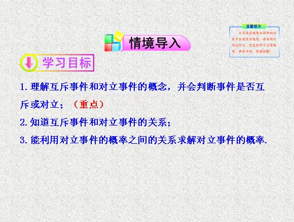 2013版高中数学全程学习夺冠方略多媒体课件:3.4 第1课时 互斥事件(苏教版必修3)