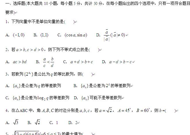 重庆市巴蜀中学2013-2014学年高一下学期期中考试(数学理)缺答案