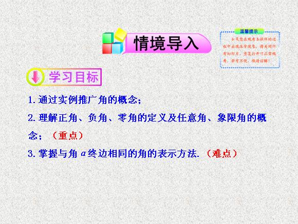 2013版高中数学全程学习夺冠方略多媒体课件:1.1.1 任意角(苏教版必修四)