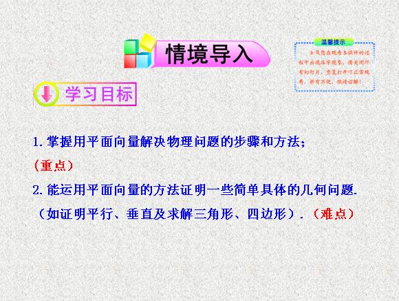 2013版高中数学全程学习夺冠方略多媒体课件:2.5 向量的应用(苏教版必修四)