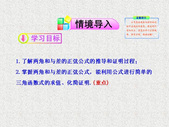 2013版高中数学全程学习夺冠方略多媒体课件:3.1.2 两角和与差的正弦(苏教版必修四)