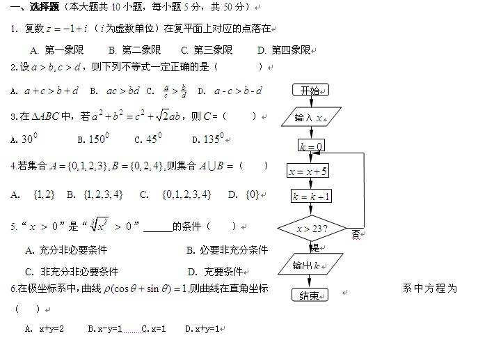 广东省东莞市第五高级中学2013-2014学年高二下学期期中考试(数学文)缺答案