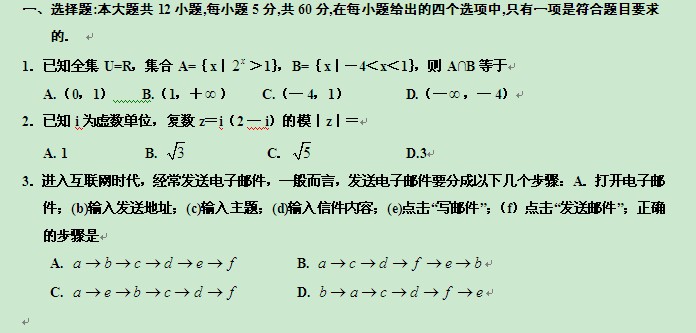 宁夏银川一中2014届高三第三次模拟考试(数学文)