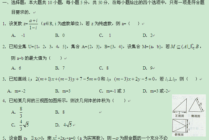 湖南师大附中2014届高三高考模拟卷(一)(数学文)