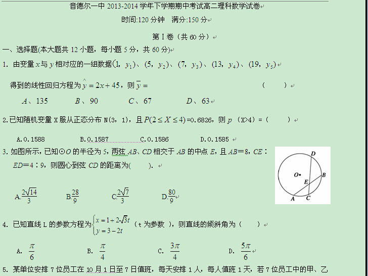 内蒙古音德尔一中2013-2014学年高二下学期期中考试(数学理)