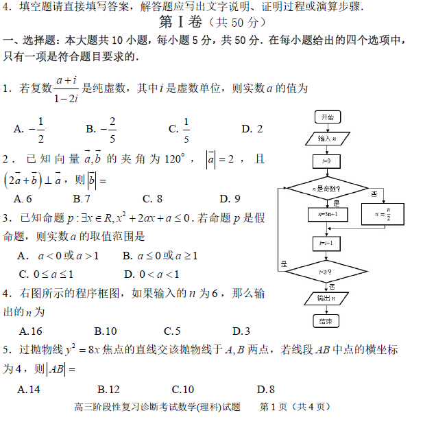 【2014淄博三模】山东省淄博市2014届高三第三次模拟考试(数学理)PDF版缺答案