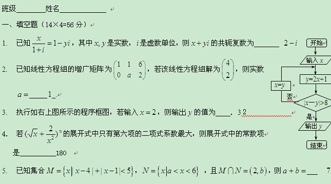 上海市大同中学2014届高三下学期5月(三模)考试(数学文)