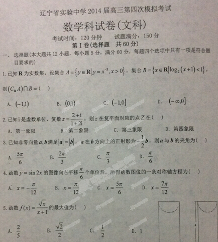 辽宁省实验中学2014届高三第四次模拟考试(数学文)扫描版
