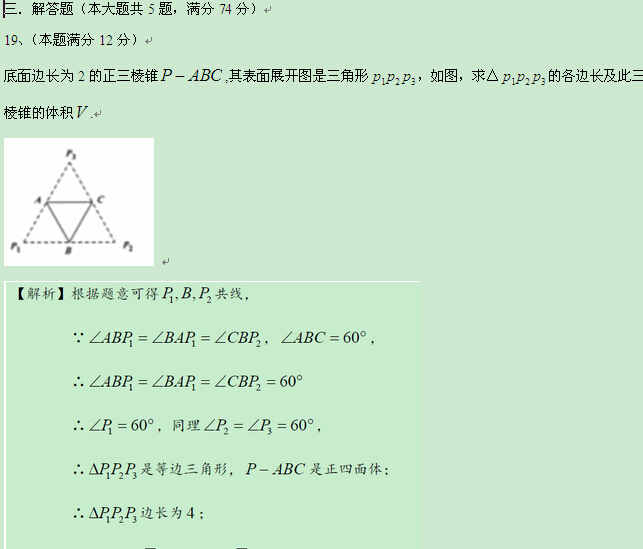 2014年普通高等学校招生全国统一考试上海卷(数学文)解答题解析版