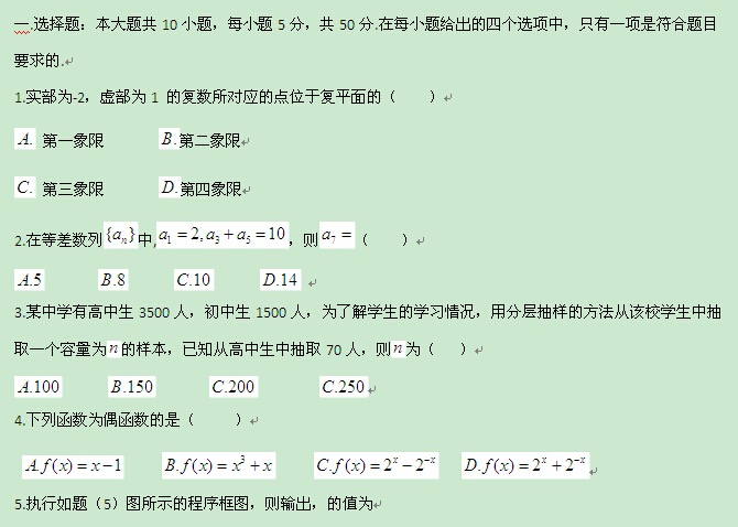2014年普通高等学校招生全国统一考试重庆卷(数学文)word版含答案