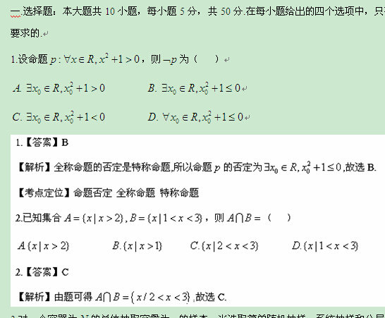 2014年普通高等学校招生全国统一考试湖南卷(数学文)小题解析