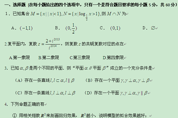 贵州省贵阳市清华中学2014届高三高考前适应性考试(数学理)