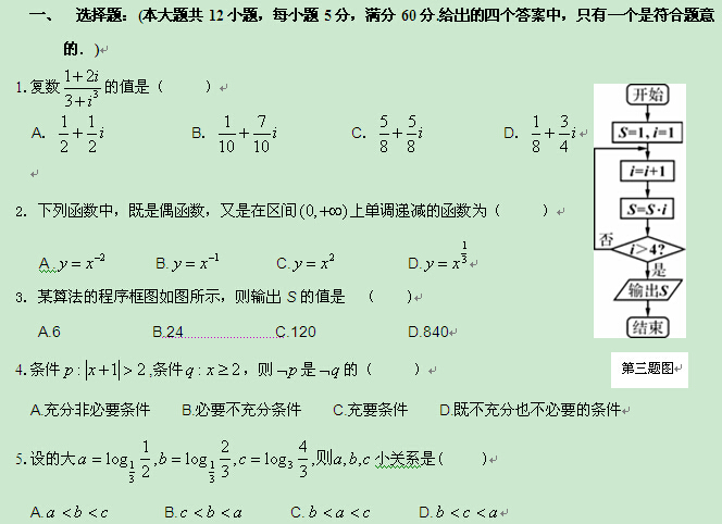 广西贺州高级中学2015届高三上学期第一次月考(数学文)