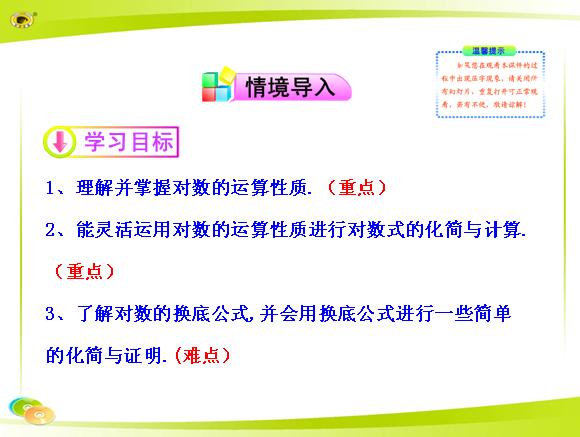 2013版高中数学课时讲练通多媒体教学课件:2.3.1 第2课时 对数的运算性质及换底公式(苏教版必修1)