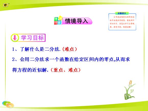 2013版高中数学课时讲练通多媒体教学课件:2.5.2 用二分法求方程的近似解(苏教版必修1)