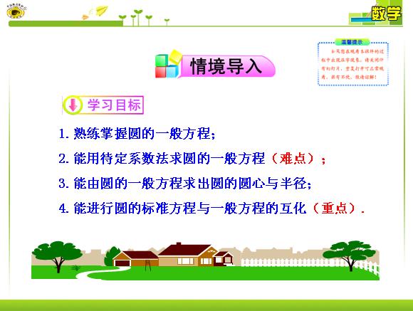 2013版高中数学课时讲练通多媒体教学课件:2.2.1 第2课时 圆的一般方程(苏教版必修2)