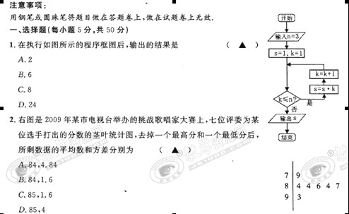 浙江省湖州市09-10学年高二上学期期末考试(数学理)扫描版