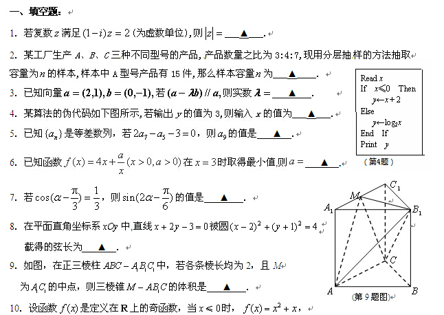 江苏省盐城市时杨中学2015届高三1月调研试题(数学)