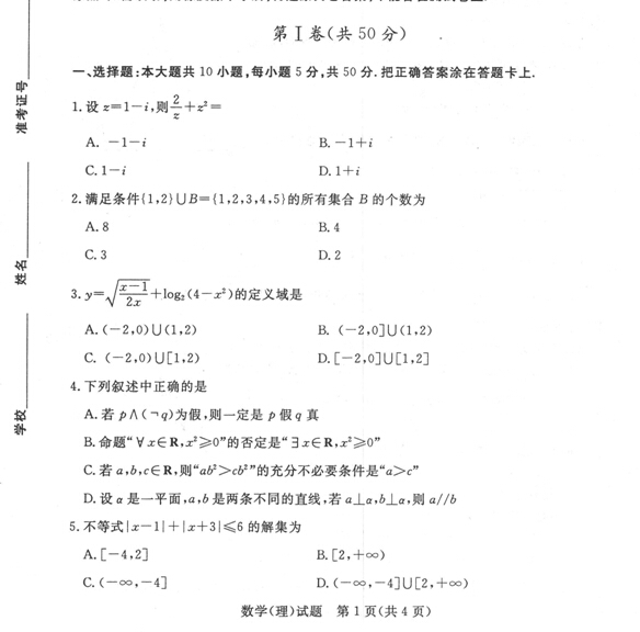 山东省德州市2015届高三上学期2月期末统考(数学理)扫描版