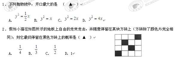 浙江省温州二中09-10学年高二上学期期末考试试题(数学文)